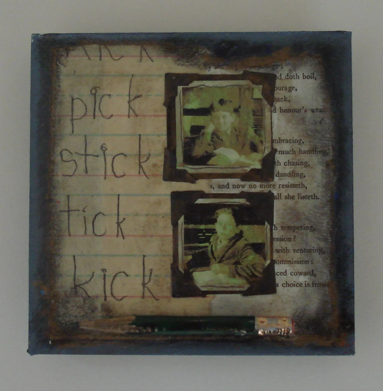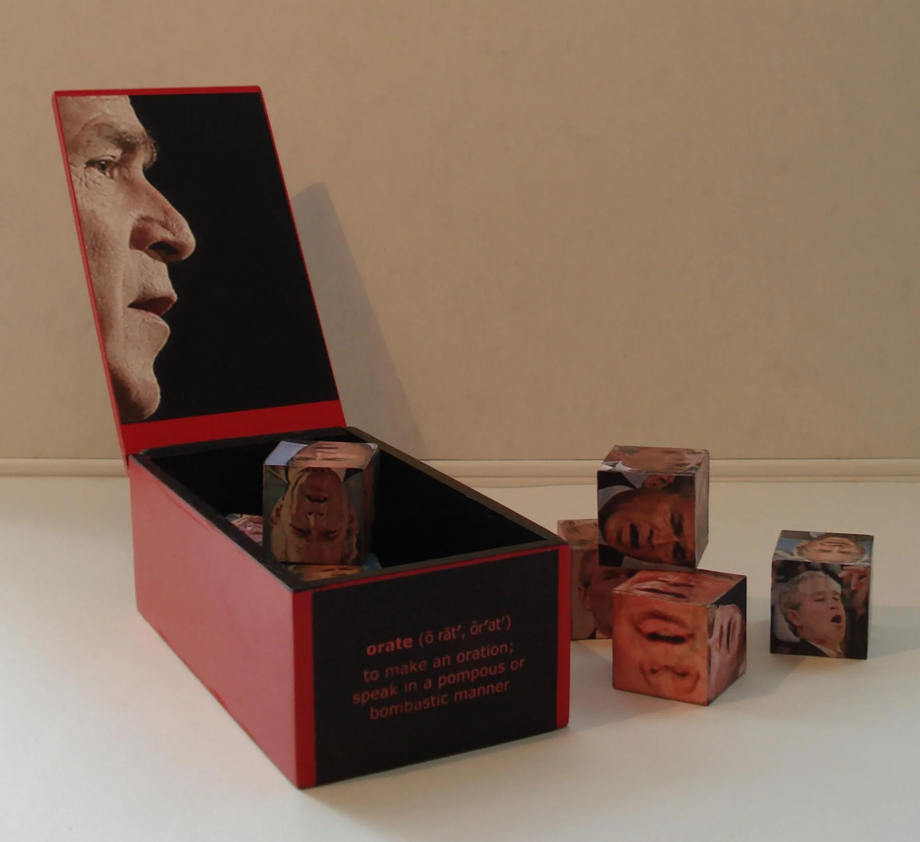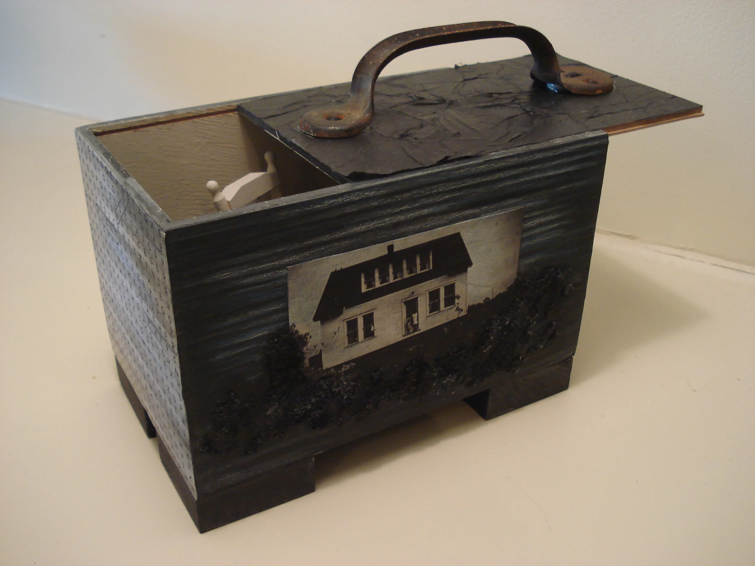 Found box, altered found images, alphabet blocks